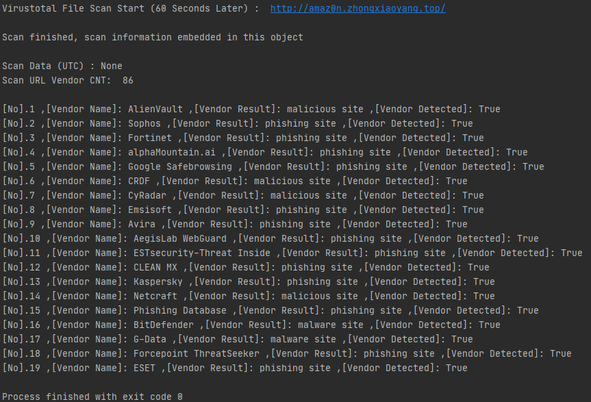 print('Virustotal File Scan Start (60 Seconds Later) : ', scan_url, '\n')
